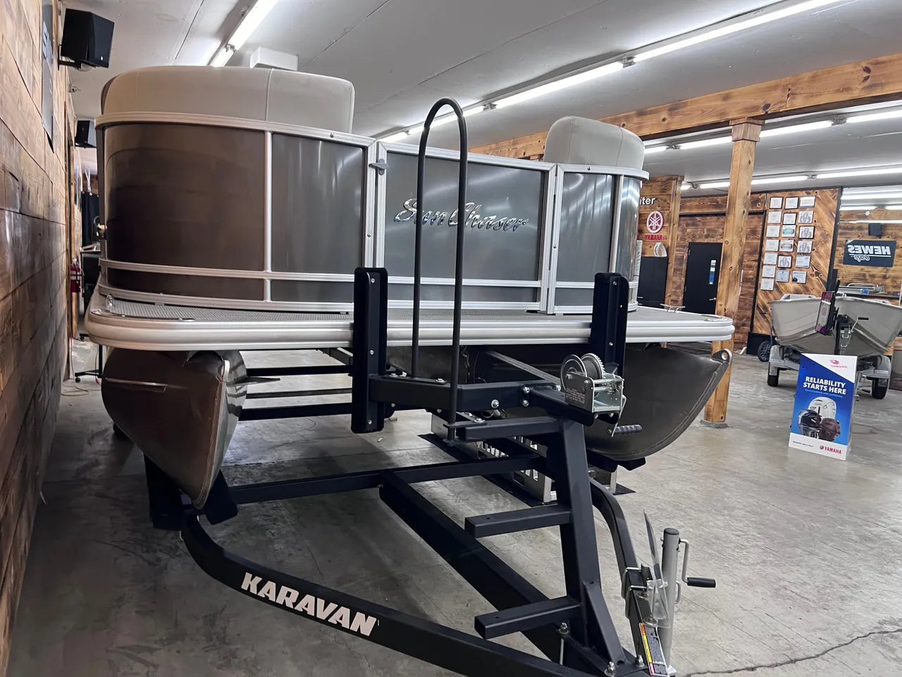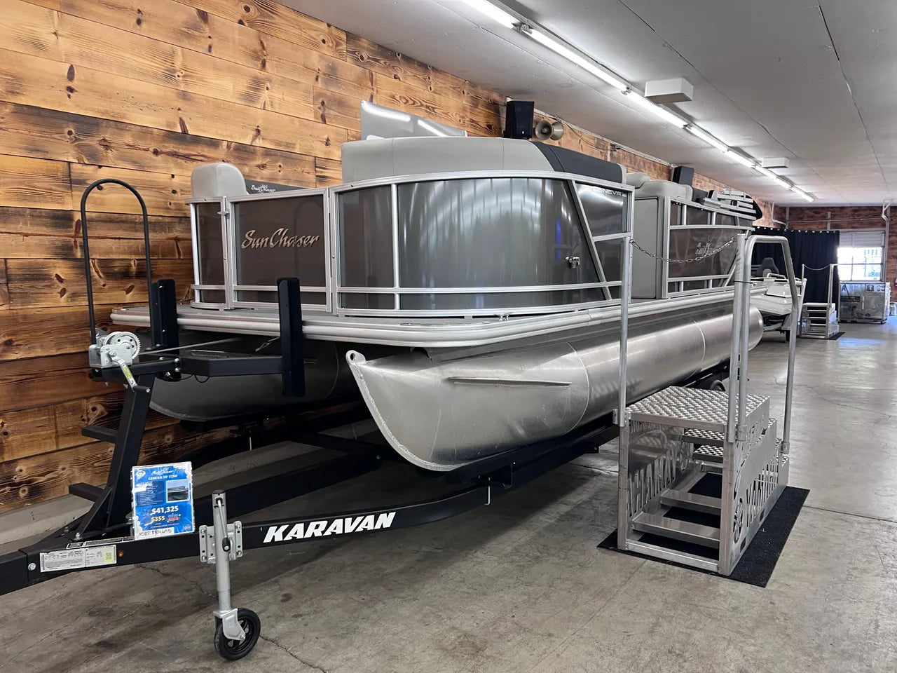 - Karavan Trailer: Paired with the durable and easy-to-maneuver Karavan Trailer, transporting your Sunchaser 20 Geneva Fish is a breeze. The trailer is designed for smooth loading and unloading, ensuring your boat is always ready for your next adventure.