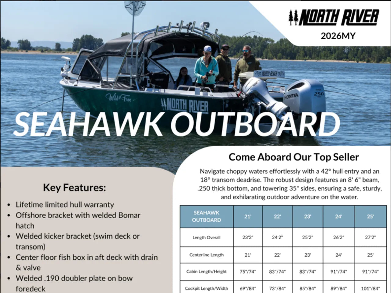 📞 Contact us today for pricing, availability, and additional details on this incoming 2026 North River 21’ Seahawk OB package. Stock boats are limited—reserve yours early.