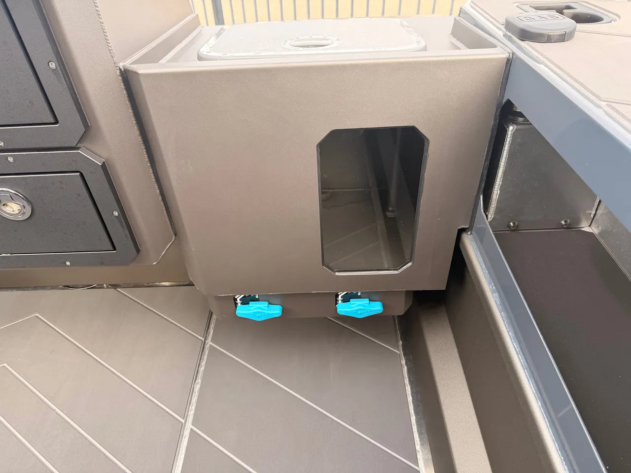 • Game Fishing Transom with Live Bait Tank and Lockable Drawers