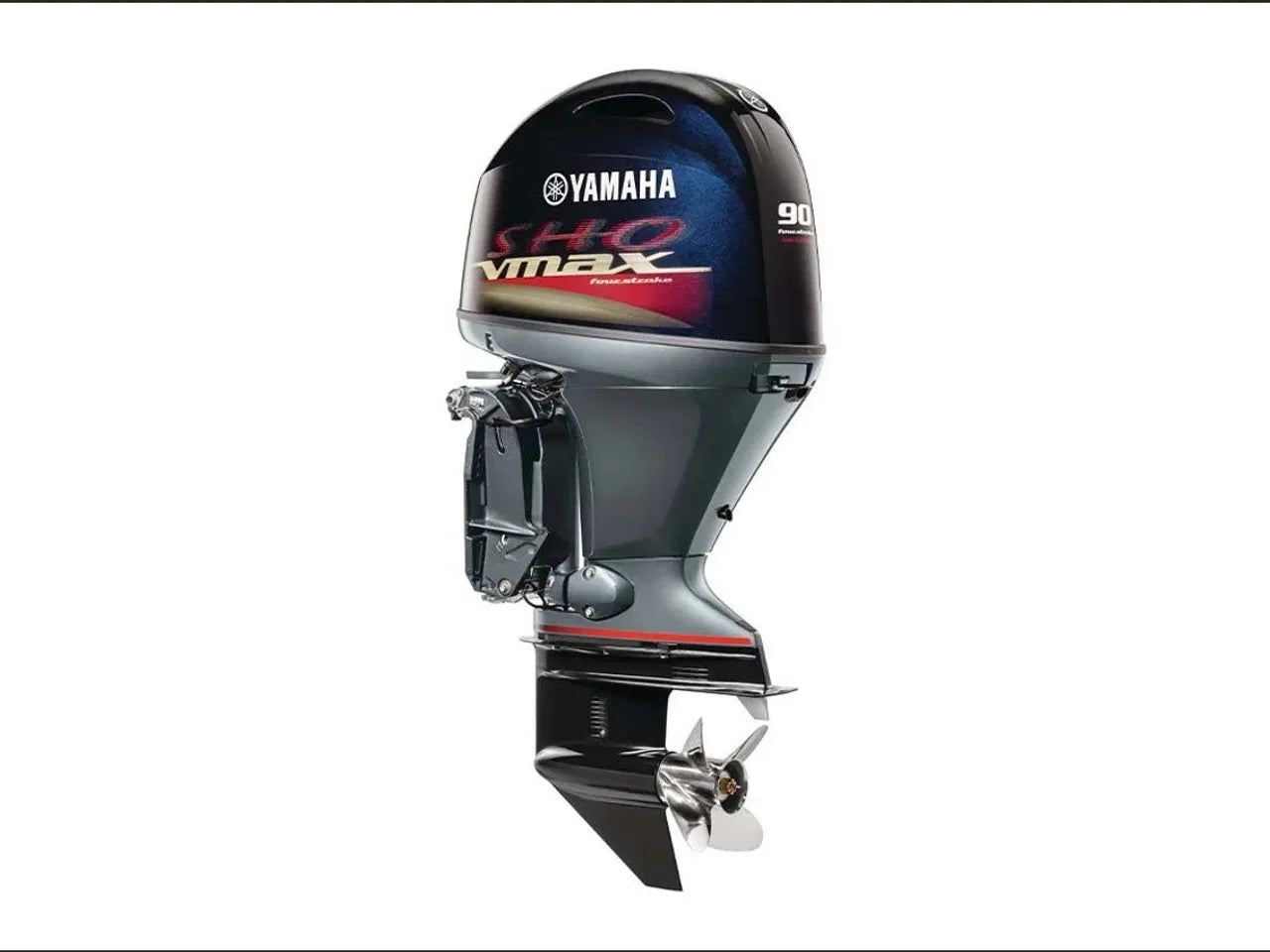 The All-New VF90 In-Line Four V MAX SHO. A single-overhead-camshaft design with four valves per cylinder and 1.8-liter displacement makes the In-Line Four V MAX SHO 90 a class leader in torque, top speed and efficiency. Still, it's one of the quietest 90-horsepower outboards on the water. That makes for some pretty stealthy fishing.