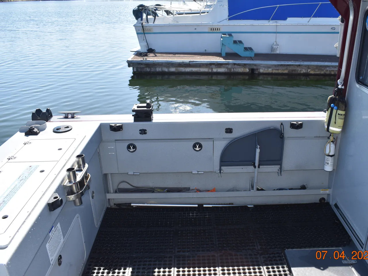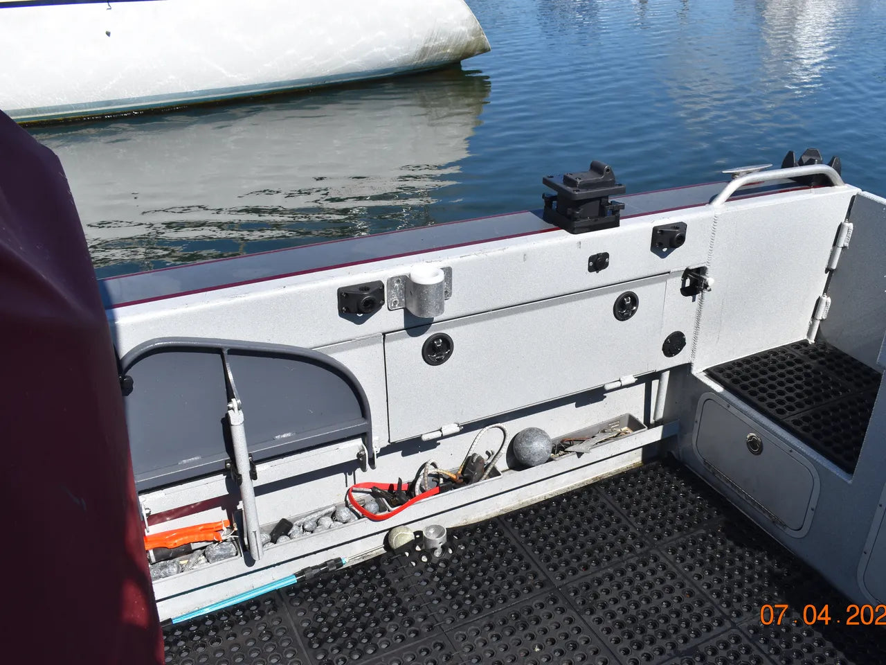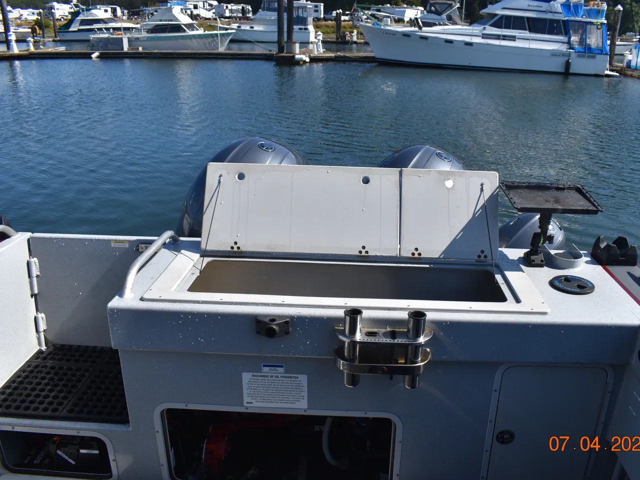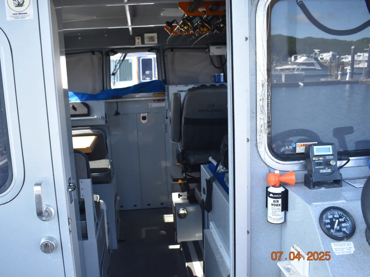 **Please note that personal fishing gear, tackle, and other personal effects seen in the photos will be removed before arriving at our lot. In addition to this, we will be removing the custom “Sea Wolf” decals prior to delivery of the boat to its new home.