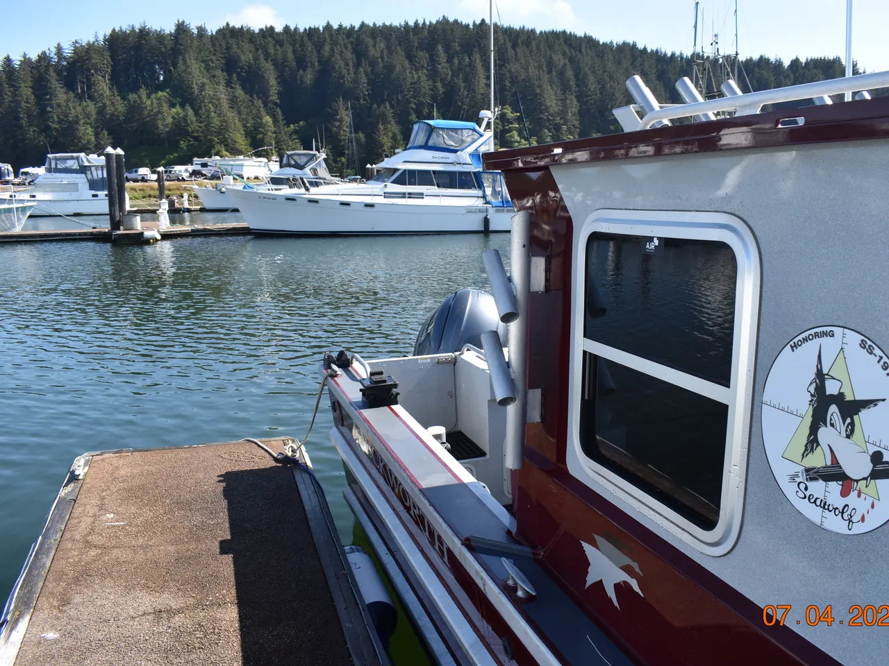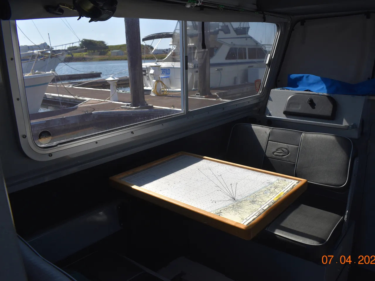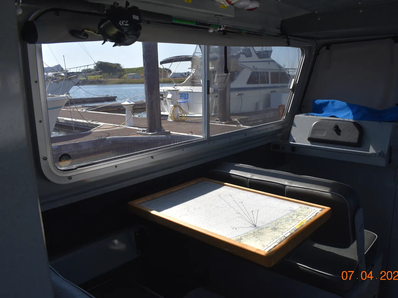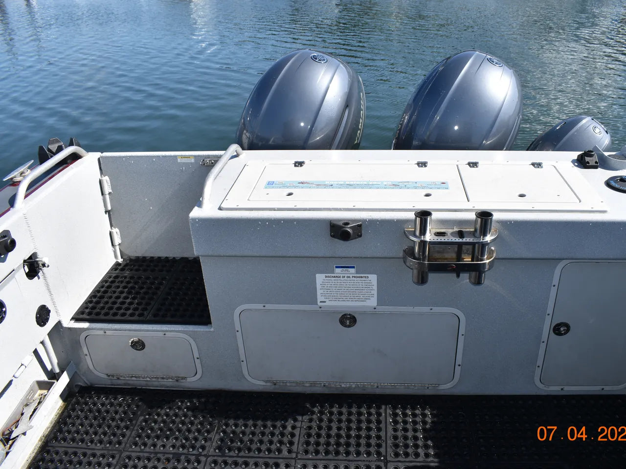 **Please note that personal fishing gear, tackle, and other personal effects seen in the photos will be removed before arriving at our lot. In addition to this, we will be removing the custom “Sea Wolf” decals prior to delivery of the boat to its new home.