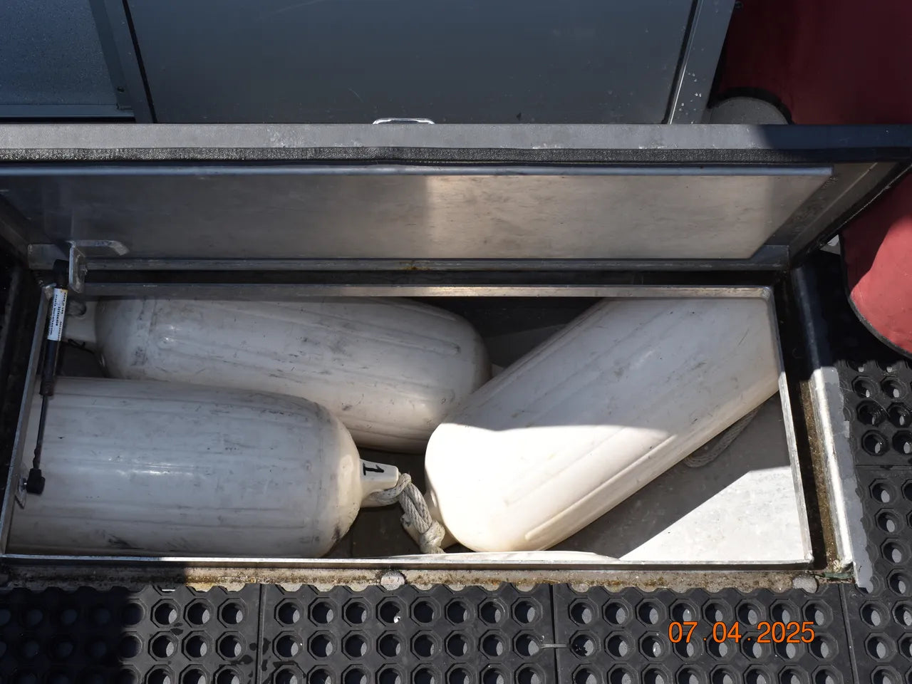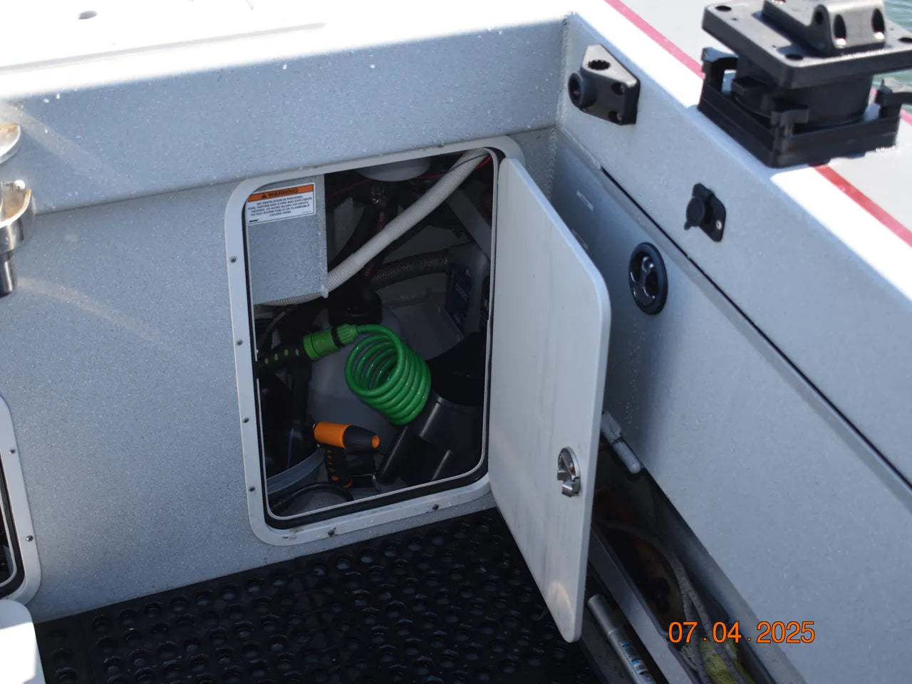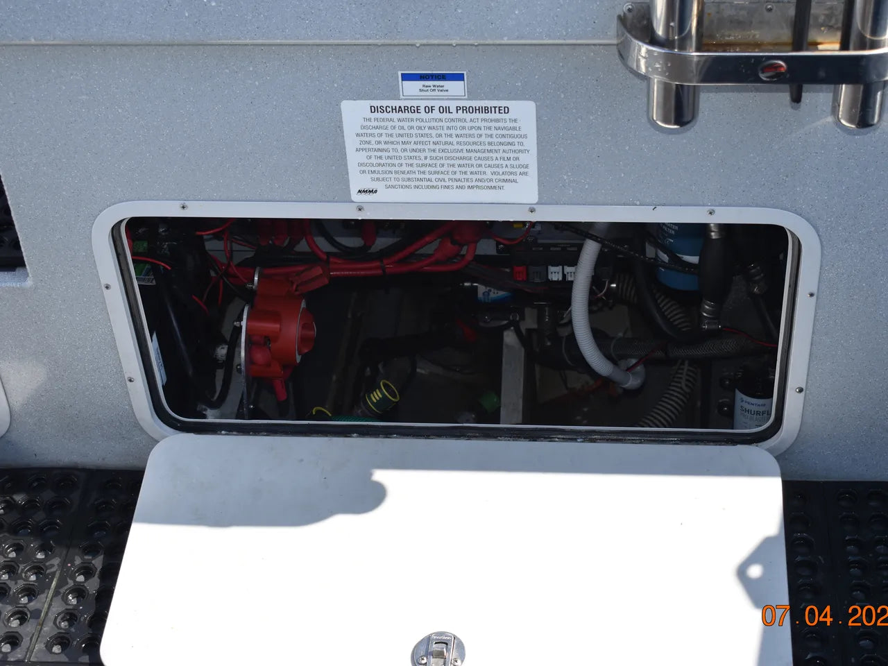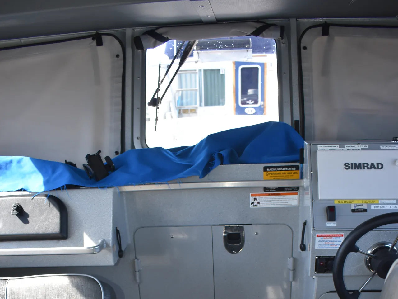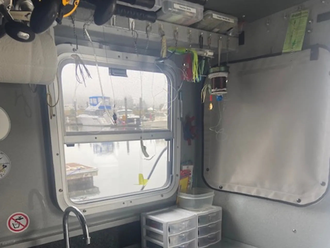 This boat has been bottom-painted to keep the hull pristine when moored in the marina, and has been fitted with custom canvas window coverings, a custom canvas boat cover for end of year storage, a custom rear deck helm cover, and engine cowling covers for winter storage.