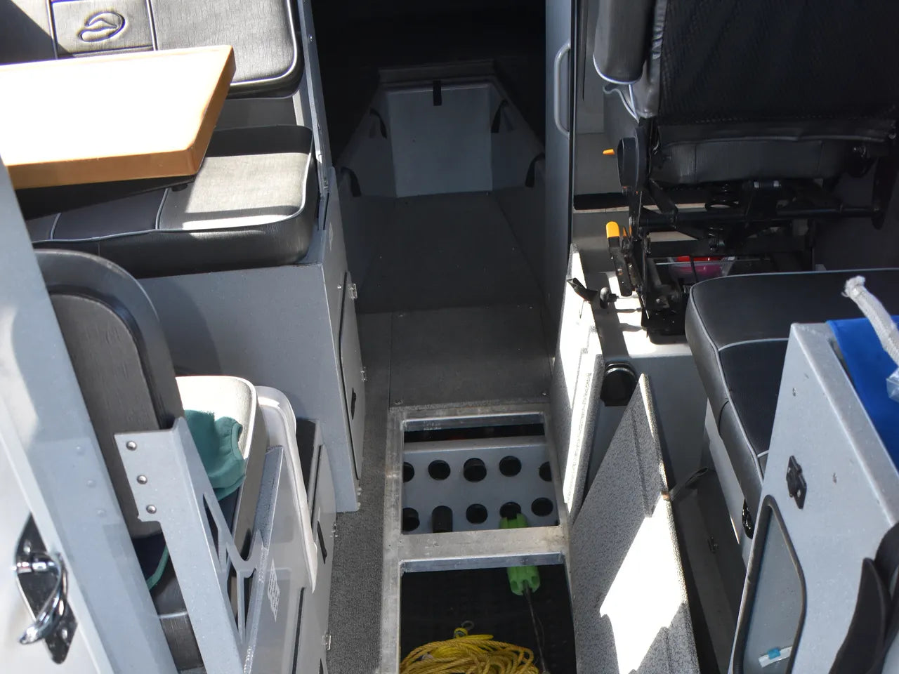 This package is equipped with a ton of standard features that you are sure to enjoy, including; a full Alaskan pilothouse, offshore bracket (29’4 overall length), rocket launcher pole holders (14 rod holders and 2 net holders), anchor windlass with rope & chain, three windshield wipers, trim tabs, navigation lights, interior cabin lights, docking lights, large aft deck fish box storage with macerator pump, transom bait box & storage, raw water washdown, foldable deck jump seating, large in-floor storage inside the pilothouse, rear deck helm for kicker motor operation (with electronics – see below for details), galley seating with dining table, ice box, sink (fresh water tank), captains suspension seat, large v-berth with storage and room to sleep 3, overhead rod storage, and a bilge system that encompasses the entire hull.