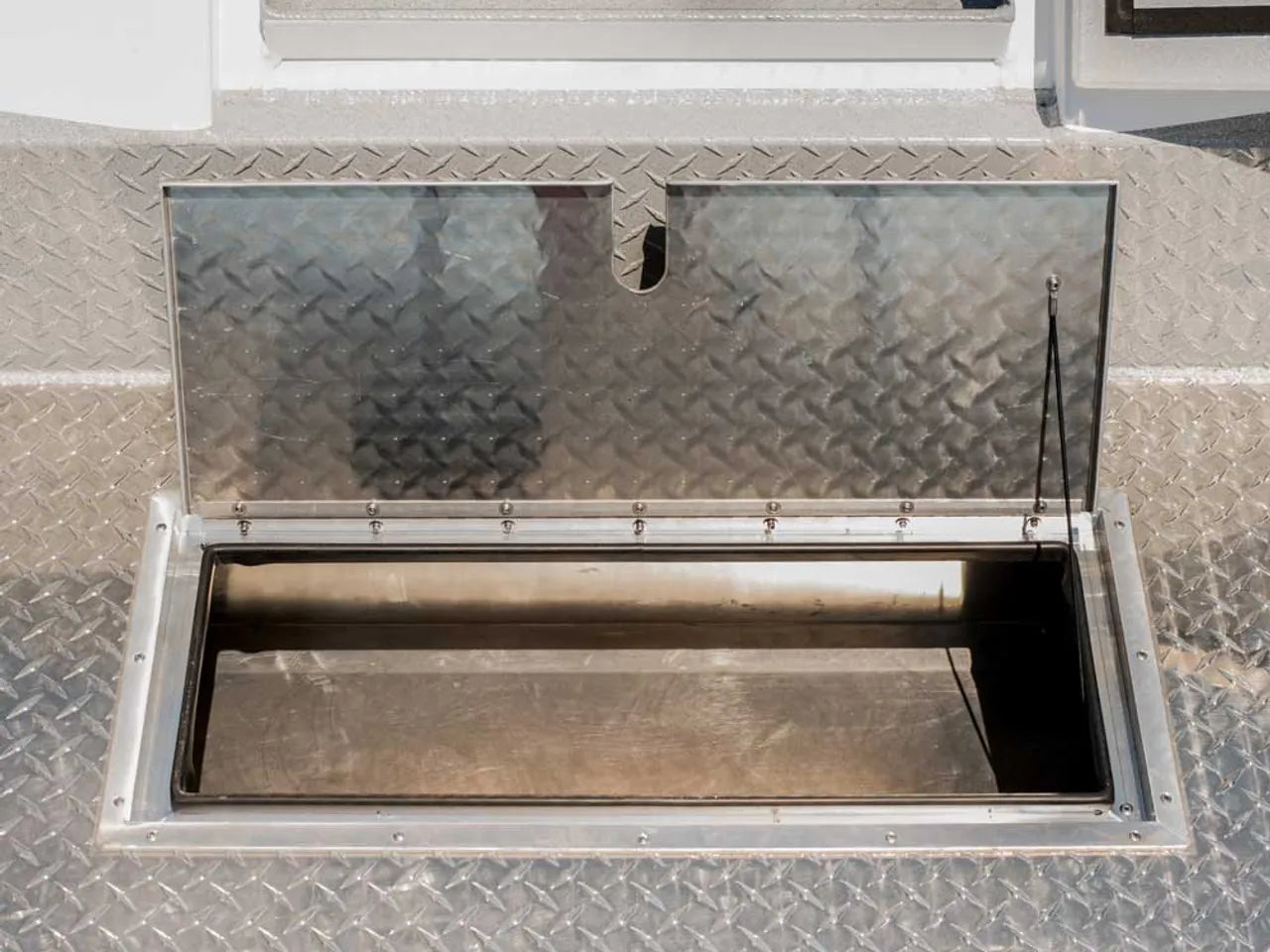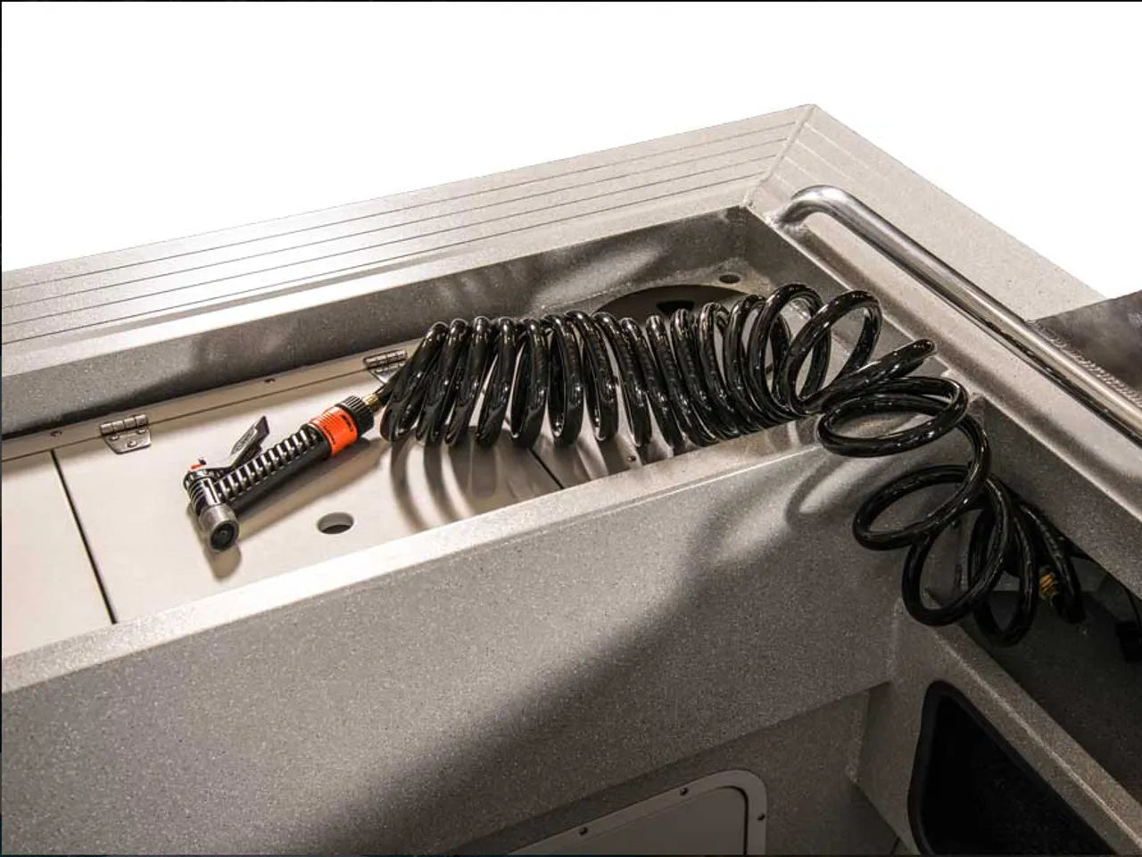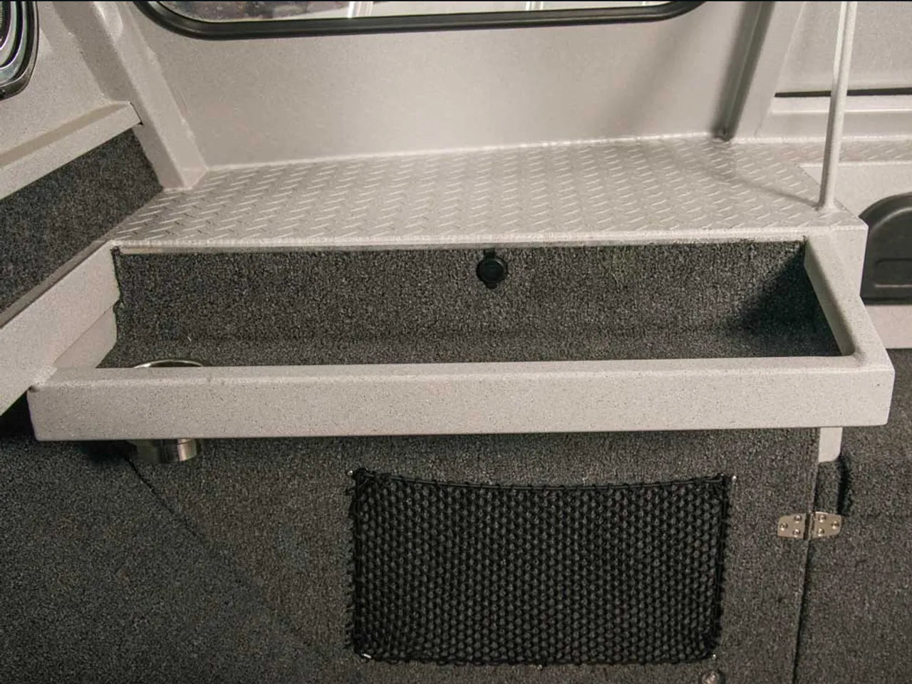 - In-floor rod storage for long tackle organization
