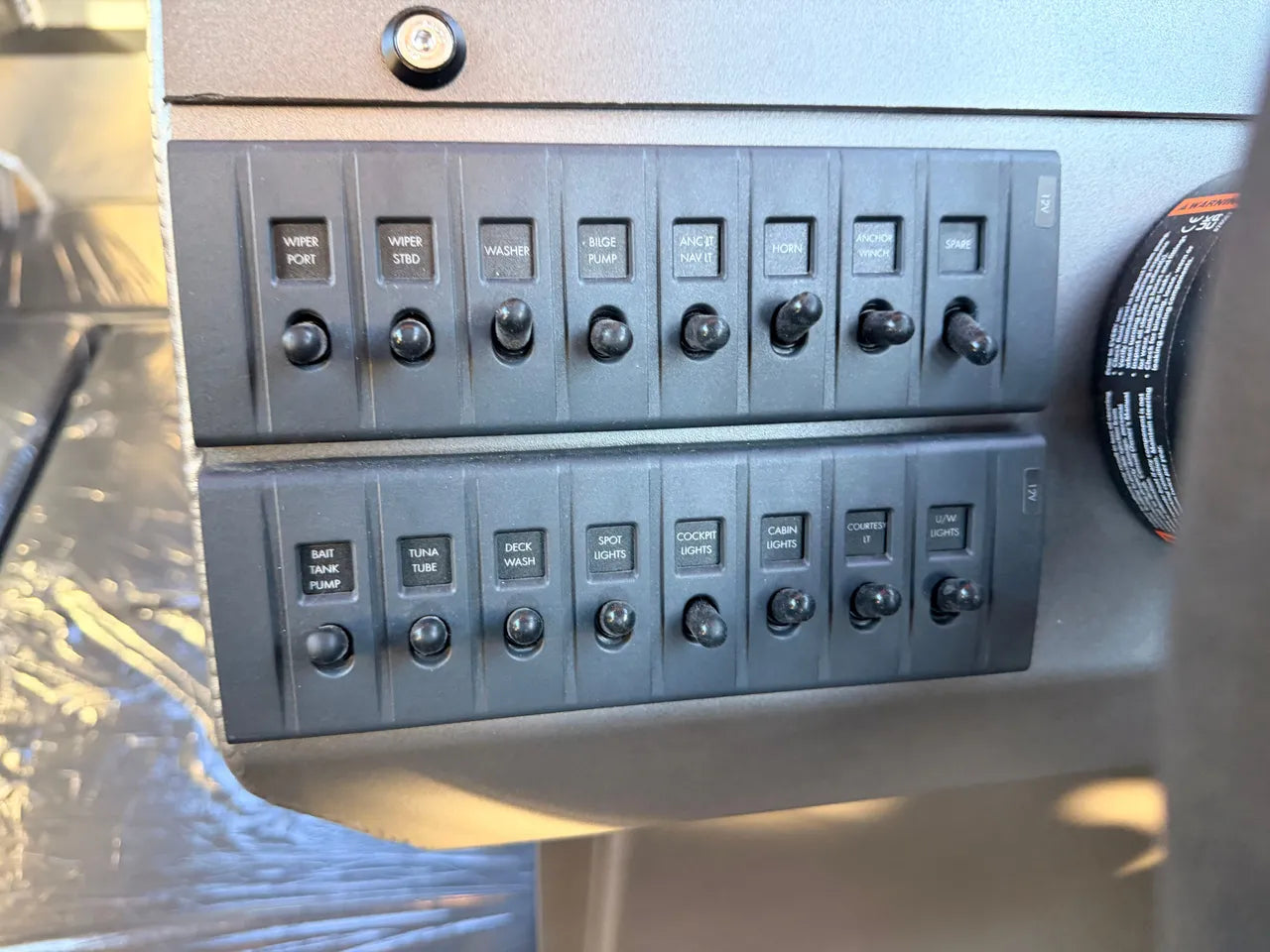 - Other Options Include: Diesel heater, radar mounting bracket, downrigger provision with plugs and breakers, Gamefish transom with live bait tank and lockable drawers, Zip Wake KB300S trim tabs, Sarca #3 anchor with rope and chain, bow mount trolling motor bracket and more!