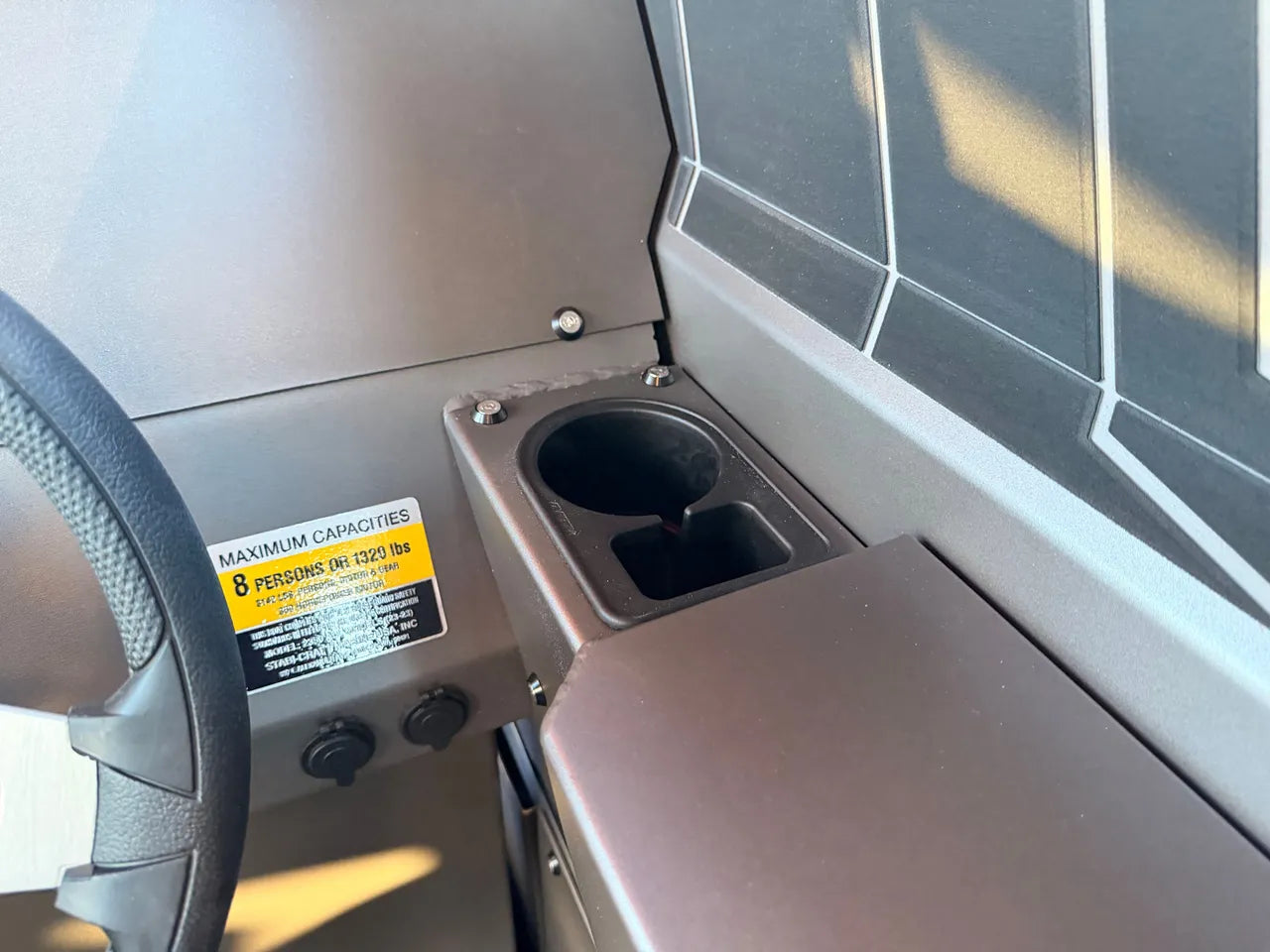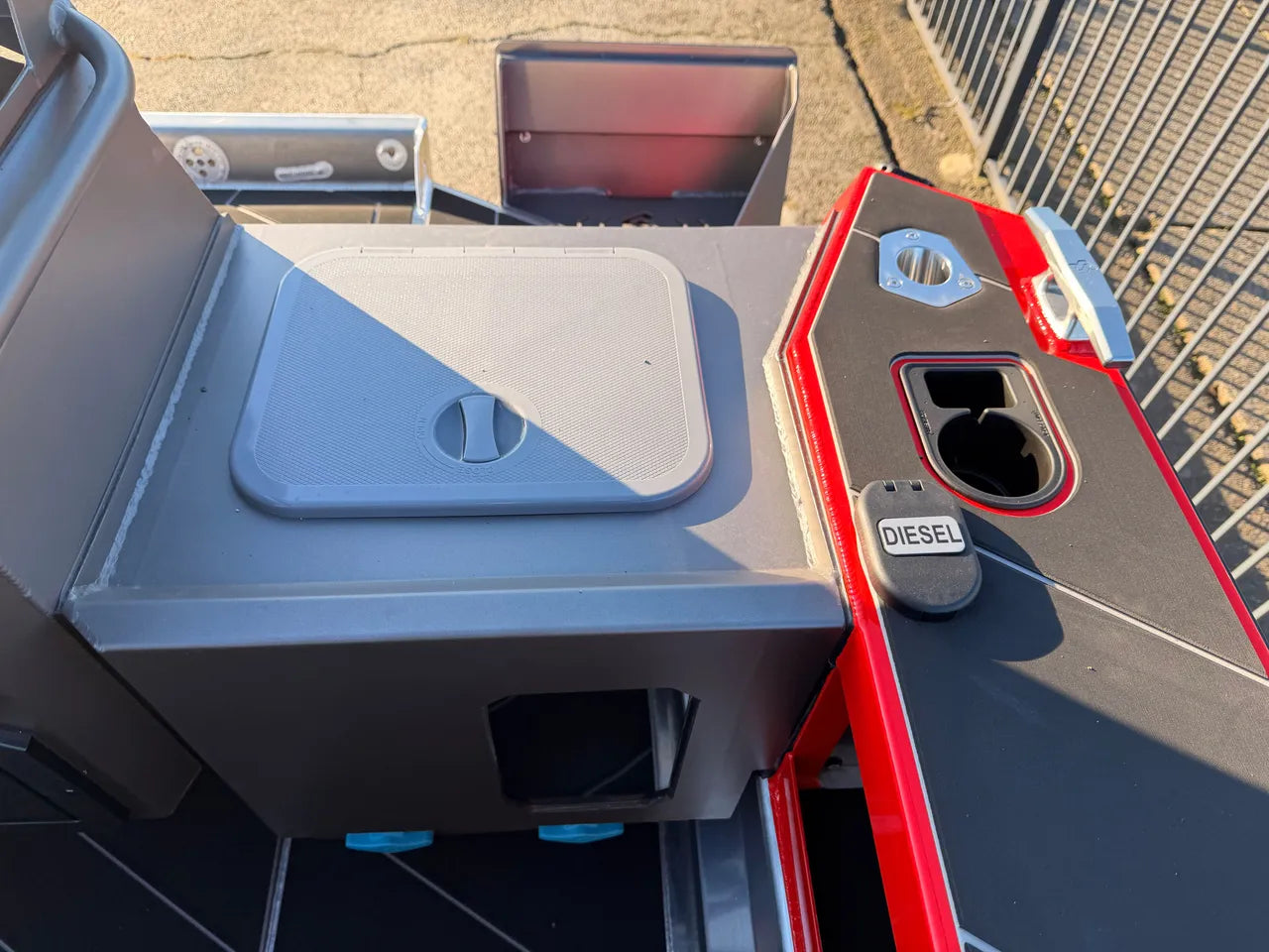 - Spacious, High-Volume Cabin: Thanks to the lean-forward windscreen, the cabin feels enormous — with room for up to 6 people seated inside and a double berth for overnighting.